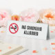 No smoking allowed. Forbidden to smoke small Table Tent Sign. Custom non smoke signage for hotel room, b&b, vacation rental, desk, bedside table, bedroom, court room, restaurant, bar, outside terrace, park, garden, shop, cafe, mall, hospital, waiting room, gas station, swimming pool, business, office, workplace, store, hall, court, sports club and other public places. Make your own signage with a cigarette logo symbol and red prohibited circle. Handy non smoking infographic for smokers, customers, clients, visitors, guests, tourists, renters etc. Also for no vaping allowed. Change the quantity to get the cheap bulk price.