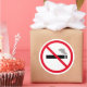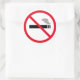 No smoking forbidden to smoke warning sign symbol Classic Round Sticker. Custom non smoking icon stickers and envelope seals. Customisable colours. Red signage for diner, museum, tourist area, hospitality business, rental property, waiting room, gym, hotels, motel, bed and breakfast, hospitality business, conference building, home, office space, restaurant, company, school, dorm, university, studio, school, hospital, care home, bedroom, bathroom, meeting room, editing room, shop, store etc. Round circle with diagonal stripe. Health warning cigarette logo.