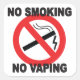 No Smoking No Vaping warning sign sticker with icons for cigarette and e-cigarette and red slash.
