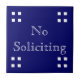 No Soliciting- Craftsman White on Blue Ceramic Tile