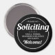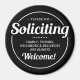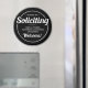 This magnet features a friendly and respectful way of saying "No Soliciting!" In a timeless and modern layout and design. You can also edit the font colours and the background colour of the magnet to match your entrance decor!