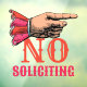 No Soliciting Pointing Hand Fun Window Cling