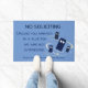 The opportunity for a science fiction fan to have a little fun with solicitors. Blue police boxes and a no soliciting message on a blue background. Original design by Night Owl's Menagerie 2019.