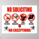 Keep the hordes away from your door with this sign that makes it clear their politics, their magazines, their candy, and their religion are not welcome. With appropriate illustrations for each one and some skull and crossbones with their devilish friend. Stickers and magnets are good to take travelling with you to assure your privacy.