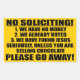 "NO SOLICITING! 1. WE HAVE NO MONEY 2. WE ALREADY VOTED 3. WE HAVE FOUND JESUS. SERIOUSLY, UNLESS YOU ARE SELLING CHOCOLATE PLEASE GO AWAY!"