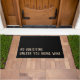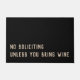 Doormat featuring the text "no soliciting unless you bring wine" in a neutral, light brown font on a black background. Text can be changed. All colours are customisable in the design tool.