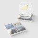 The coasters are gorgeous, a quality feel and heavy weight. They look like a precious archeological find. A rustic stone juxtaposed with a modern floral black and white print. I like the way the print goes slightly imperfect on the cut stone edges giving them a kind-of natural beauty.