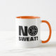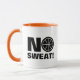 No sweat funny coffee mug for basketball player and coach. Sports humour cup design with cool ball logo and humourous motivational quote. Fun novelty Birthday presents for basketball trainer, dad, captain, coach, player etc. Add your own personalised colours.