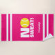 No Sweat funny tennis beach towel for coach player. Cute personalised beachtowel for him or her. Make your own fun towel for pool, beach or sports. Humourous present for tennis player, coach, sports trainer, teacher, kids, retired person, friends, family, girl, boy, teenager etc. Customisable in different colours. Pink, yellow and white colour example. Bold typography template. Add your own name, funny quote or saying. Sporty stripes design.