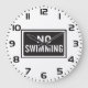 Keep time with a twist using this wall clock featuring a bold no swimming warning sign in high-contrast black and white. Ideal for beach houses, poolside decor, or adding a unique statement piece to any room. Functional and eye-catching, it blends humour with everyday practicality.
