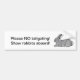 A bumber sticker with a light grey or chinchilla rabbit that says no tailgating show rabbits aboard! Great for shows!