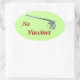 Oval Sticker which reads "No Vaccines" complete with needle and drop. The drop has a skull in it. This 4" sticker speaks volumes.