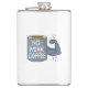 The flask itself is fine. It’s a cheap flask, obviously bought in bulk, however am prepared to overlook that. Given that it is a personalized item, I would have liked to have seen gift boxing instead of the generic packaging. Terrible printing, and/or quality. It’s a cheap, tacky vinyl. It is not cut straight and is also applied in a way that it is overhanging the bottom, causing the glue to catch on items and it will eventually roll and tear, damaging the wrap.