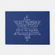 Door mat with the Star of David (Magen David) formed with the words from Isaiah 54:17 "No weapon that is formed against you shall prosper, and every tongue that shall rise up against you in judgment you shall prove wrong. This is the heritage of the servants of YHVH and their righteousness is of me, saith YHVH." White text on a dark blue background colour.