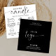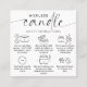 Minimalist No Wick Candle Care Card with elegant script font, care icons and black and white design. This modern wickless candle safety instructions card includes the most important flameless candle care information as well as a thank you note on the back with space for your logo and business details.