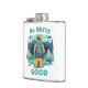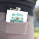 The flask itself is fine. It’s a cheap flask, obviously bought in bulk, however am prepared to overlook that. Given that it is a personalized item, I would have liked to have seen gift boxing instead of the generic packaging. Terrible printing, and/or quality. It’s a cheap, tacky vinyl. It is not cut straight and is also applied in a way that it is overhanging the bottom, causing the glue to catch on items and it will eventually roll and tear, damaging the wrap.