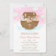 Noah's Ark Cute Animals Pink Baptism Christening Invitation
