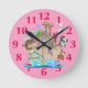 Noah's Ark Wall Clock with a pink background. Great baby shower gift for the mum of a newborn girl. delightfuldoodles.