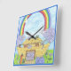 Noah's Ark Watercolor Rainbow Funny Elephant Square Wall Clock