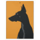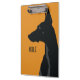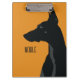 A minimalist clipboard design for dog owners or lovers which has been put on yellow background. The design introduces a silhouette of a black Doberman accompanied with the default customisable thanks.