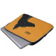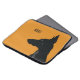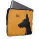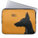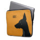 A minimalist laptop sleeve design for dog owners or lovers which has been put on yellow background. The design introduces a silhouette of a black Doberman accompanied with the default customisable thanks.