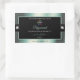 The design features a noble shimmering icy teal frame with fine decor lines, on a plain black background.