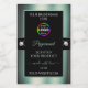The design features a noble shimmering icy teal frame with fine decor lines, on a plain black background.