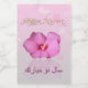 Noble, elegant Persian New Year illustration: A pink hibiscus bloom with New Year wishes in english and farsi on a bokeh background.