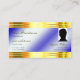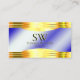 Noble Royal Blue Shiny Gold Borders Monogram Photo Business Card
