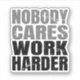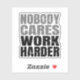 Add a touch of motivation to your gear with our 'Nobody Cares, Work Harder' distressed text sticker. This sticker isn't just for decoration; it's a daily reminder to push through every workout. The rugged, distressed text adds style while the powerful message keeps you focused. Stick it on your water bottle, laptop, or gym equipment, and let it inspire you to reach your fitness goals. With this sticker, hard work and dedication are always at your side.