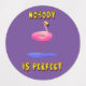 The "Nobody is perfect" design, featuring a flamingo wearing a real swimming ring, is a humourous and playful depiction. This illustration emphasizes the fact that no one is perfect, but they can still have fun. The flamingo, an exotic bird, is usually associated with elegance and grace. However, in this design, his "imperfection" is humorously highlighted, as he relies on a swim ring to stay in the water instead of being able to swim perfectly himself.The real swimming ring reinforces the contrast between the normally expected elegance of the flamingo and its current situation.