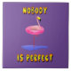 Bring humour and charm to your space with this quirky "Nobody is Perfect" design featuring a relaxed flamingo floating in a pink swimming ring. Set against a bold purple background with playful 3D-style yellow lettering, this fun and eye-catching design is perfect for flamingo lovers, summer vibes, and anyone who embraces imperfection with a smile. Ideal for gifts, home decor, and accessories!