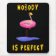 Bring humour and charm to your space with this quirky "Nobody is Perfect" design featuring a relaxed flamingo floating in a pink swimming ring. Set against a bold purple background with playful 3D-style yellow lettering, this fun and eye-catching design is perfect for flamingo lovers, summer vibes, and anyone who embraces imperfection with a smile. Ideal for gifts, home decor, and accessories!