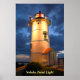 Nobska Point Lighthouse illuminated under an early evening sky, Woods Hole, Falmouth, Cape Cod, Massachusetts