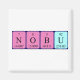 Nobu spelled out as N O B U (Nitrogen Oxygen Boron Uranium) on a magnet for the scientist in you.