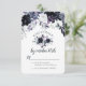 Nocturnal Floral Watercolor Lush Flower Design with Hand Painted Stems, Vines, Leaves, Foliage. Colourful Navy blue, Dusty blue, Dark almost Black Grey, and hints of Mauve pink. With Hand Drawn Line elements, Swirly Chic Hand Lettered Brush Script Fonts, Top Border Drop, and Elegant floral Bouquet- Wedding RSVP Cards!