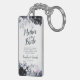 Nocturnal Floral Watercolor Lush Flower Design with Hand Painted Stems, Vines, Leaves, Foliage, Watercolor Paint Brush Strokes. Colourful Navy blue, Dusty blue, Dark almost Black Grey, and hints of Mauve pink. With Hand Drawn Line elements, Swirly Chic Hand Lettered Brush Script Fonts and Elegant Floral Top Border - Mother of the Bride Heartfelt Quote Keepsake Keychain!