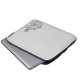 The sleeve is made of nice feeling material and seems very durable. I'm not sure how easy it'll be to clean, but the construction seems sound and the fabric is quick thick. I also like the double zipper. The printing is lovely and appears durable. The white on black contrast is nice, and the design very elegant.