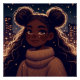 a lo-fi anime girl with a large, textured afro and two buns on top.