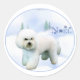 Noel. Evergreens, a snowy background, and the Bichon Frise wish you a peaceful holiday season this Christmas. Our dog design makes a great gift for you or a friend.