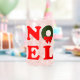 NOEL in big letters on two lines, inspired by the famous LOVE sculpture, with a Christmas wreath for the "O." For yuletide entertaining.