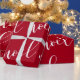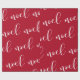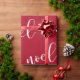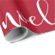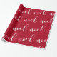 This stylish holiday wrapping paper features the word "noel" repeated in modern white calligraphy on a red background.