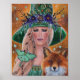 Originally an 11 x 14 inch acrylic on canvas painting featuring a Lovely witch named "Noemi" with a red fox friend and a luna moth. Copyright Renee L. Lavoie