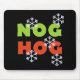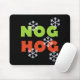 Bright red and green text with white snowflakes reads "Nog Hog" on holiday T-shirts, tote bags, sweatshirts, mousepads, buttons, and more, perfect for anyone who loves egg nog and who is looking for a fun, cute, and somewhat humourous holiday design!