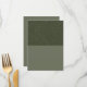 Swap ordinary white menus for a statement piece that doubles as décor. This flat card opens with a dramatic horizon: the upper panel glitters in deep moss green noise—tiny specks that evoke starlight and instantly grab attention—while the lower panel stays smooth sage-moss, giving you a perfectly quiet stage for clear, readable text. Launch Zazzle’s live editor, drop in farm-to-table course lists, signature cocktail pairings, sponsor logos, campus crests, QR codes, table assignments, personalised guest names, or scripture verses in seconds—no design software, no minimums, no headaches. Each sheet prints on demand across a lineup of premium papers (think velvety Matte, ultra-thick Luxe, felt-textured Cotton), so you can proof one sample for a styled shoot or roll out fifty-thousand units for nationwide corporate summits, eco-forward weddings, sorority banquets, bar or bat mitzvah dinners, quinceañeras, milestone birthdays, holiday galas, church fund-raisers, or restaurant tasting events without tying up cash in dead inventory.