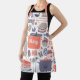 Nom Nom Kitchen All-Over Print Apron. Pattern includes: colourful cooking pots and pans, food such as hamburgers, cupcakes, utensils and text that reads nom nom.