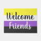 Non-binary welcome mat with the message “Welcome Friends” - or choose your own message. Whether you are non-binary or an ally, using this welcome mat lets visitors know you support and love the enby community.