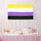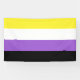 Non-binary people may identify as having two or more genders; having no gender; moving between genders or having a fluctuating gender identity; or being third gender or other-gendered, a category that includes those who do not place a name to their gender. Each stripe colour represents different types of non-binary identities: Yellow for people who identify outside of the gender binary, white for nonbinary people with multiple genders, purple for those with a mixture of both male and female genders, and black for agender individuals.