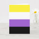 Non-binary people may identify as having two or more genders; having no gender; moving between genders or having a fluctuating gender identity; or being third gender or other-gendered, a category that includes those who do not place a name to their gender. Each stripe colour represents different types of non-binary identities: Yellow for people who identify outside of the gender binary, white for nonbinary people with multiple genders, purple for those with a mixture of both male and female genders, and black for agender individuals.