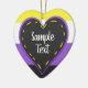 Ceramic Christmas ornament shaped like a heart with the non-binary pride flag and a heart in the centre of the design. A yellow, white, purple, and black flag of the enby pride movement; with an editable text field for your name or message; a great way to decorate your Christmas tree :D